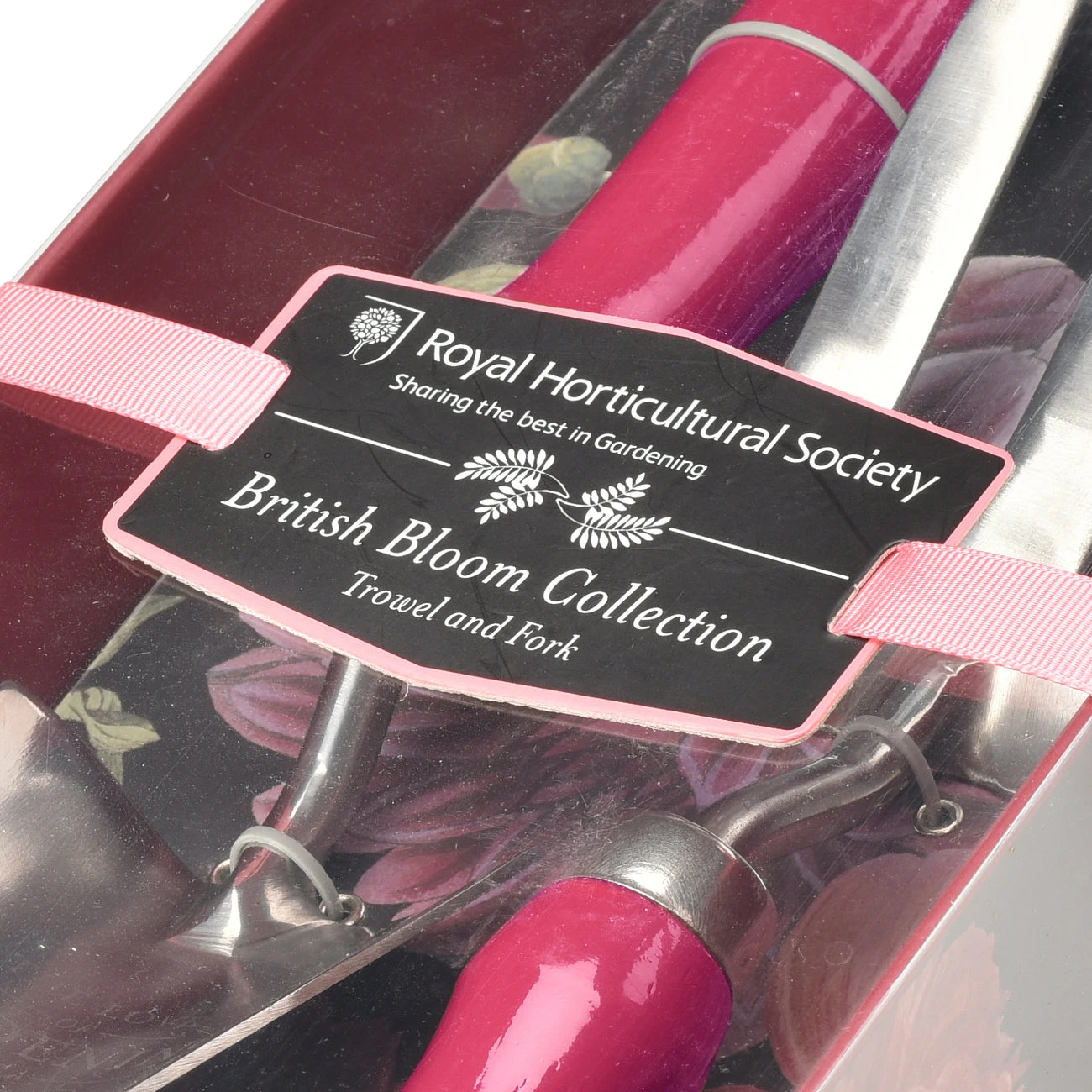 [/description][trade-description]This beautiful gift set of RHS-endorsed garden trowel and garden hand fork makes a simply lovely gift for a gardening loved one.Part of the stunning new ‘British Bloom’ collection in the RHS Gifts for Gardeners series, this eye-catching set features a beautifully bold design of dahlias and peonies, some of the most beloved blooms in the garden. And now that these garden classics are once again hot horticultural favourites, ‘British Bloom’ is firmly en vogue. The designs have been carefully selected from the RHS Lindley Collections and include early nineteenth century botanical illustrations and watercolours dating back to the 1630s.