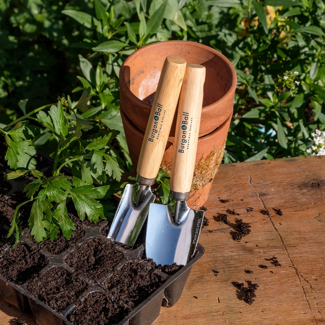 [/description][trade-description]Handy sized pair of trowels – perfect for filling cell trays without messy over spill and transplanting seedlings into pots or the garden.You may also be interested in our Essential Tools seedling widger, or our cell tray tamper.
