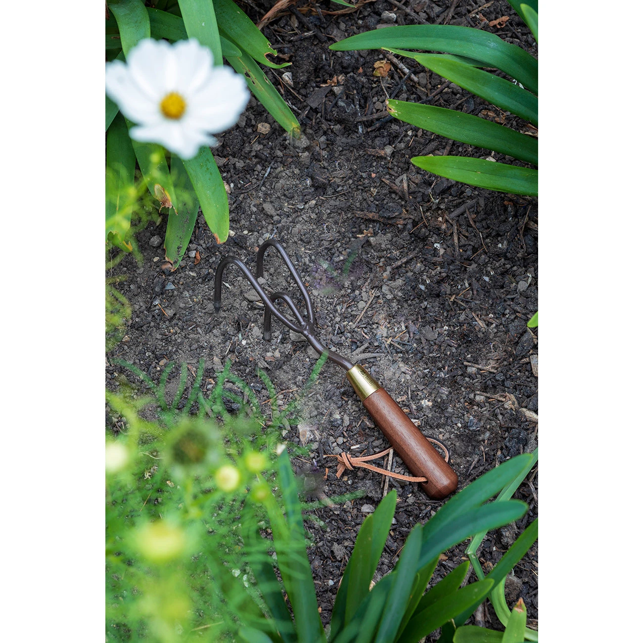 [/description][trade-description]A claw cultivator in strong high-carbon steel from our National Trust made by Burgon & Ball collection. These garden tools have been created to echo the style and quality of the garden tools of yesteryear, celebrating traditional manufacturing techniques. Their attention to design results in hand tools of strength and durability, to make gardening easier for every gardener.This robust cultivating tool is ideal for breaking up and aerating the soil in borders or beds ready for planting, or to allow better absorption of water and nutrients. The sharpened tines are specially hardened and tempered to chop easily into the soil. The strong high-carbon steel has a textured powder coating in an unusual antique bronze colour to protect from corrosion.