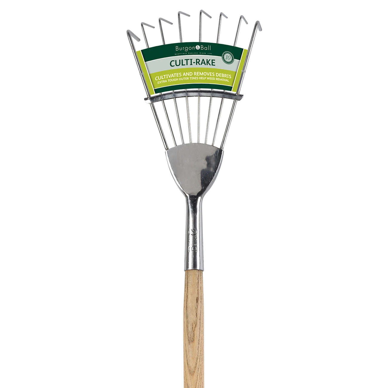 The stainless steel of the Culti-Rake is extremely resistant to rust, so will stay looking good for years to come. The long, lightweight handle in FSC® certified hardwood eliminates stooping to keep backache at bay, and a strong leather cord allows the rake to be hung up when not in use, to keep things tidy in the shed.