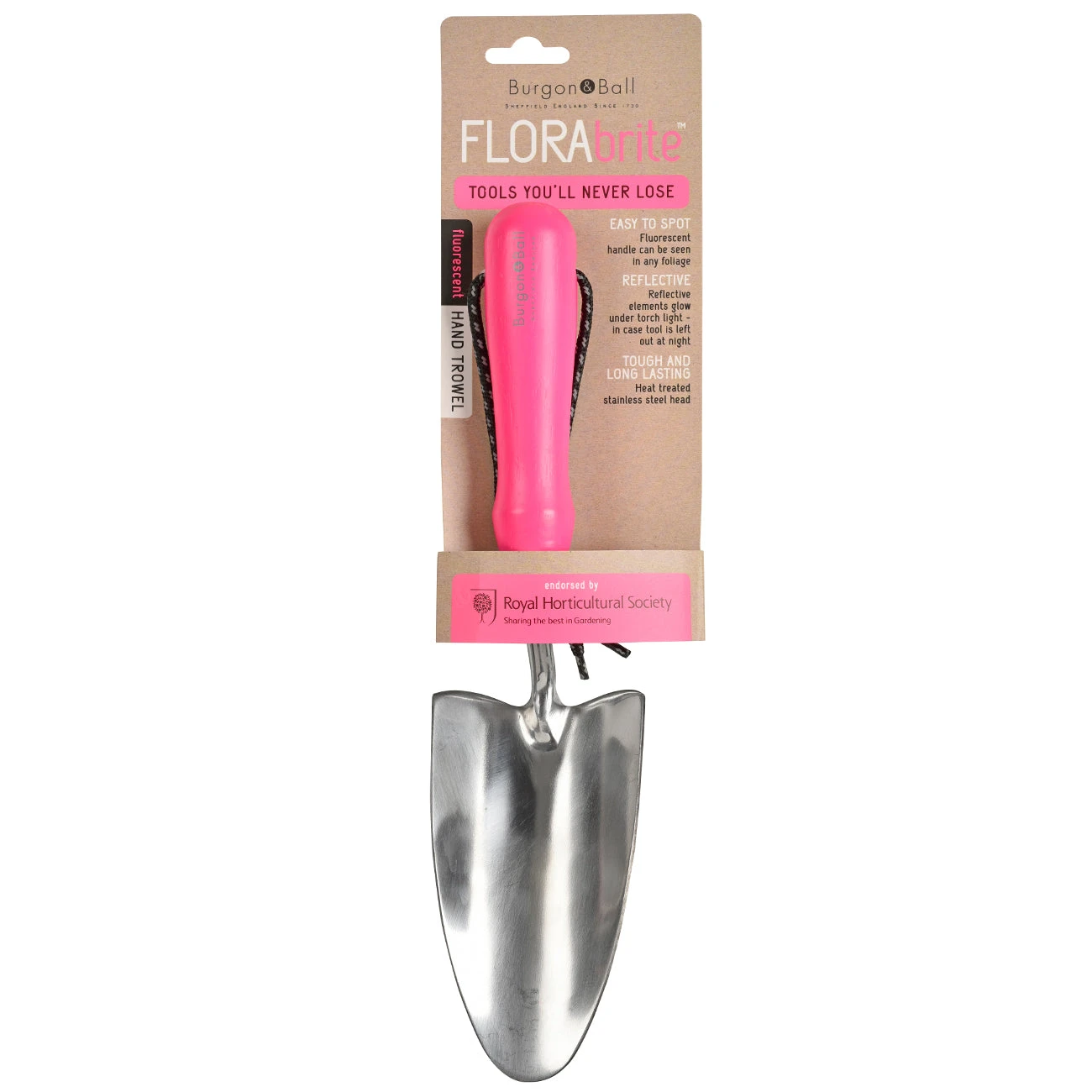 [/description][trade-description]The handle of this RHS-endorsed hand trowel shows up in any foliage, while reflective highlights glow under torchlight.Wide, deep dish for maximum load.