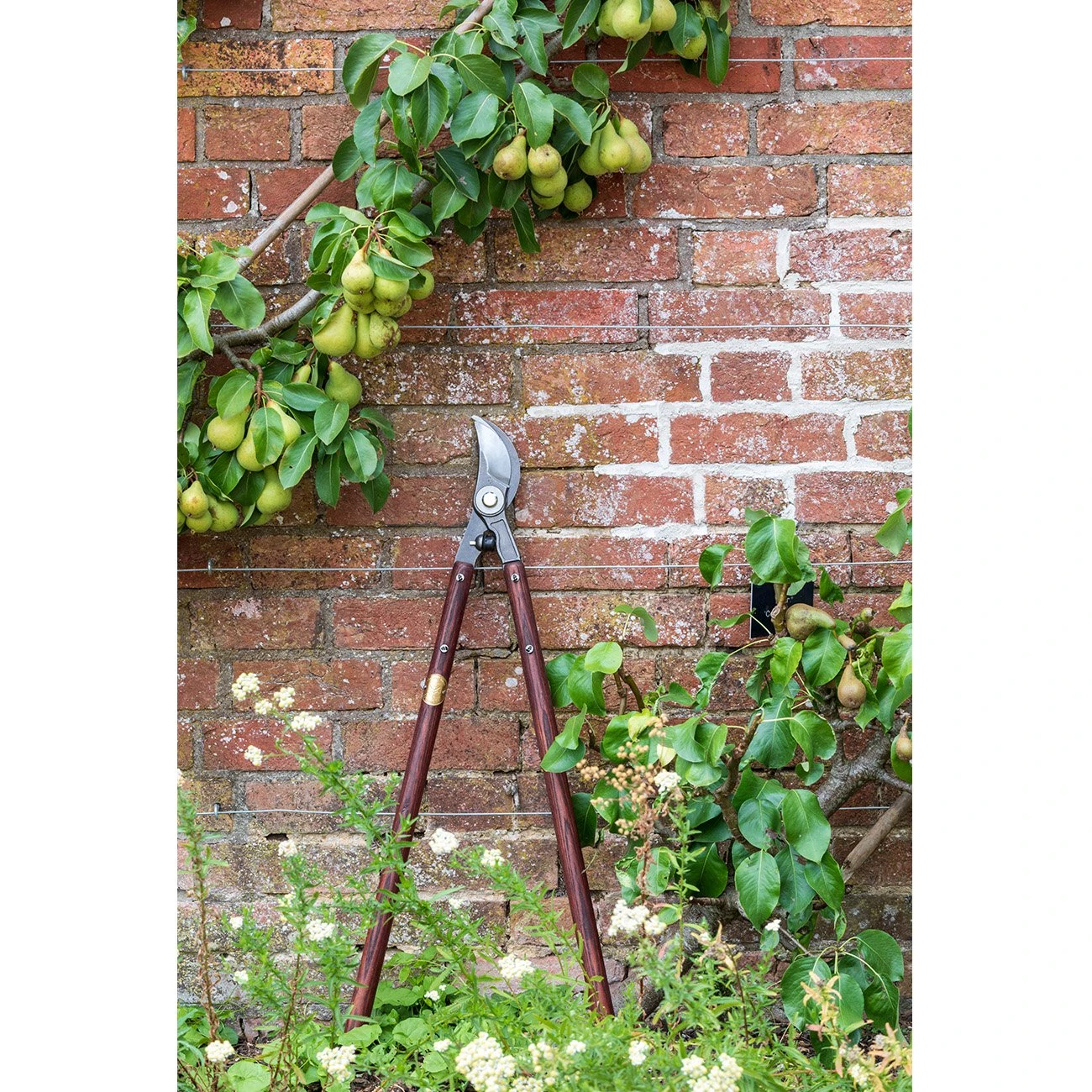 [/description][trade-description]This National Trust garden lopper echoes the style and quality of the garden tools of yesteryear. Celebrating traditional manufacturing techniques, the attention to design detail results in a strong and durable lopper, developed to make gardening easier for every gardener.The strong high-carbon steel of the head of this lopper has been drop forged, a manufacturing process which removes any voids and aligns the grain of the metal for a tool of outstanding strength and enduring sharpness. The bypass action is ideal for making the precise, clean cuts which are better for plant health. The rubber bumper stops give cushioned shock absorption to reduce any hand and shoulder fatigue for the gardener.