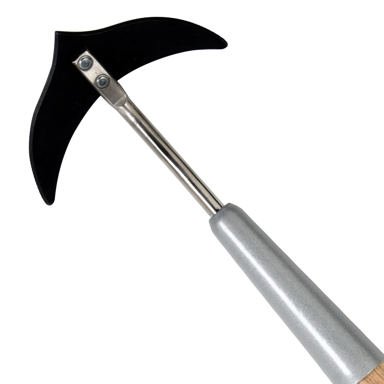 Unlike a traditional hoe, which chops down through the soil, Weed Slice is used just under the surface, where the sweeping curves of the head easily slice through weed roots and tender shoots. This technique minimises soil disturbance and helps the soil retain that all-important moisture. The hardened high-carbon steel head cuts on both the push and the pull strokes, to get weeding done in half the time.