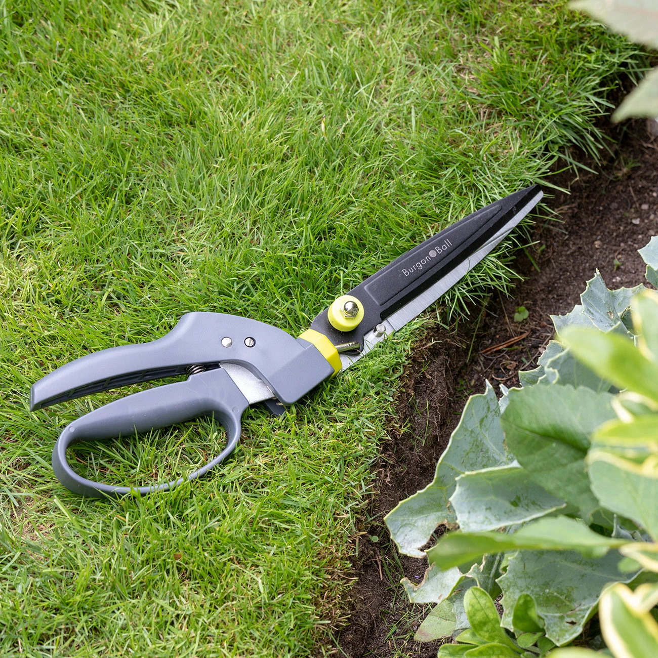 [/description][trade-description]This single handed grass shear is endorsed by the Royal Horticultural Society, perhaps the ultimate accolade in the gardening world. If you’re a little particular about having a perfectly smooth lawn with no hard-to-cut, overgrown corners to spoil the look, this is the perfect shear for you!The scissor action single-handed grass shear incorporates lots of clever features for fast, easy, precise trimming of grass, even when wet. Most notably, perhaps, the two super-sharp high carbon steel blades rotate through 180 degrees, so you can use it at precisely the right angle for the cutting task at hand – horizontally to cut grass, vertically to trim edges, or even diagonally, if required. There’s a non-stick coating on one blade to minimise gumminess and to make cleaning easy.